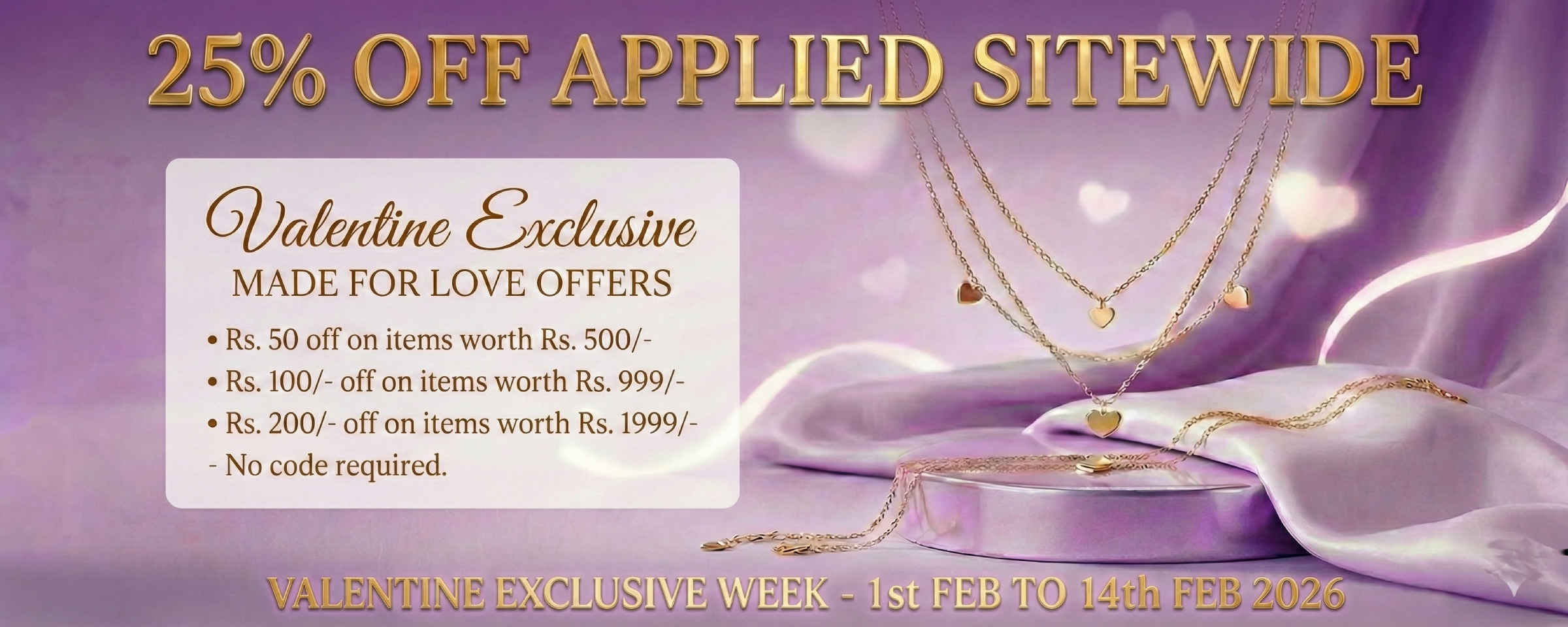 Lustre side hearts chain pendant